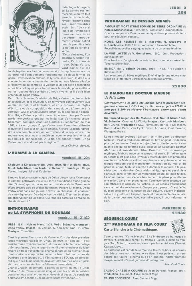 Du 1er au 21 décembre 1993. Les journées cinématographiques de Kiev. Séquence court. Un dictionnaire du cinéma