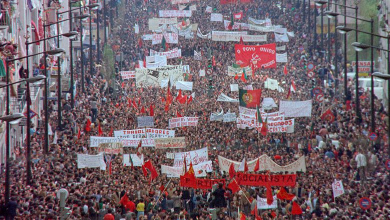 Littéralement : « Les Fusils et le Peuple ». Le 25 avril 1974, l’armée portugaise renverse le régime de Marcelo Caetano, issu de la dictature de Salazar. En quelques heures, tout bascule et le coup d’État est en cours. Il sera filmé ! Du 25 avril au 1er mai 1974, dix équipes de tournage filment Lisbonne en liesse et l’aube de la Révolution des Œillets. La parole se libère enfin après quarante-huit ans de muselage, et citoyens et soldats s’expriment sur la démocratie en marche. Des images puissantes pour un témoignage essentiel. Et si l’année 1975 est éminemment politique pour les Portugais, elle l’est aussi pour leur cinéma.