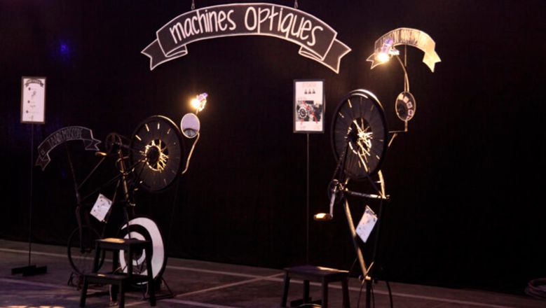 Des machines d’illusion en grand mais pour le plaisir des petits… et des grands. Ces structures ont été conçues à partir d’éléments de vélos (pédaliers, roues et chaînes) et divers objets de récupération. Elles reproduisent des machines optiques du XIXe siècle comme le zootrope ou le praxinoscope. Des séries de dessins y sont disposées. Lorsque le spectateur manipule la machine, les images prennent vie sous ses yeux…